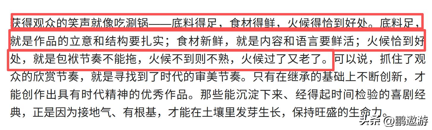 冯巩将观众的笑声喻为火锅,其中虽然没有提到岳云鹏,但整篇都是他的警示。