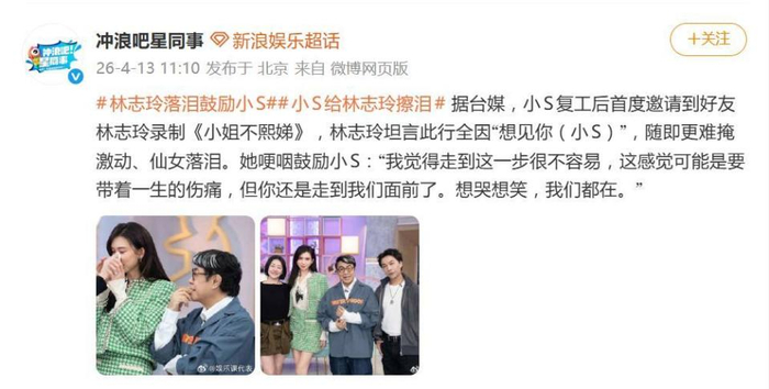 这份历经调侃淬炼的友情,在关键时刻格外牢固。早在2025年11月,小S经历姐姐离世后,首度复出亮相金钟奖时,林志玲看到直播就曾泪崩。她当时就感同身受地表示:“她失去亲人的煎熬我懂,但依然带着微笑站上舞台。”如今亲自来到节目现场支持,更是将这份心疼与力挺摆在了台面上。