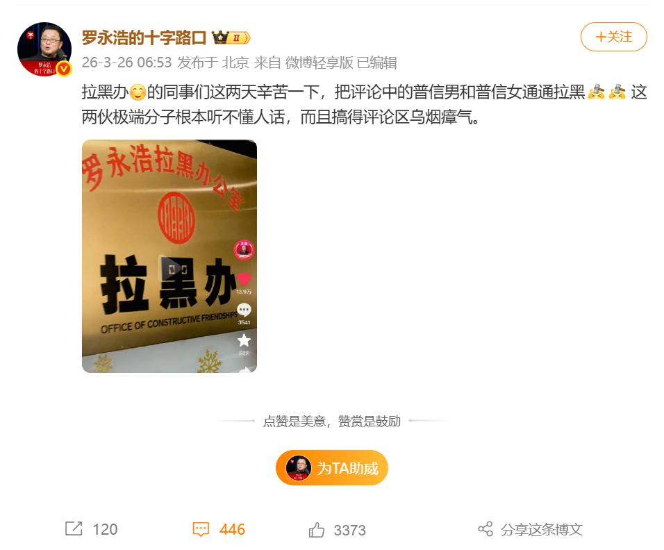 这场“杨笠+罗永浩”合作的爆炸性事件,堪称近年来最具戏剧性和话题性的搞热闹,作为一个经常以争议为流量密码的“大实话先生”,罗永浩这次选择了一条看似高风险却意外奏效的路,直接将自己和杨笠的“铁粉”关系推到了全新的高度。,### 01. “铁粉”大佬,硬刚到底!,罗永浩这次的硬刚,堪称经典,面对网友质疑他为流量吃黑,老罗直接“翻车”回怼:“有没有可能是你低级呢?”更绝的是,他还一口气将自己定位为杨笠的“铁粉”,甚至主动要求粉丝帮忙清理评论区的“普信男”和“普信女”残留,这操作简直是在主动请缨成为一场“性别对立”的“大翻车”,这种硬核的方式,既保全了自己“大实话”的人设,又成功引发了更多的讨论。,### 02. 网友疯狂对线,戏剧性爆棚!,杨笠的“普信男”争议本就像一颗燃烧的火药,罗永浩的力挺让这场火势愈发燎原,从“男人为什么那么普通却那么自信”到“反婚反育”的误解,杨笠的言论一直都像是等待着被点燃的导火索,罗永浩的加入,恰好点燃了这颗导火索,导致网络上一片焦虑和对立。,一些男性网友对罗永浩的支持者直接抛出了“性别歧视”和“吃黑流量”的指责,而罗永浩则一脸“无辜”之状,甚至主动调侃自己在流量上的操作:“除了今日头条掉了几百个‘粉丝’,所有平台的‘粉丝’数都增加了。”这句话简直是对自己“掉粉”与“涨粉”双向互动的精彩总结。,### 03. 署名事件背后的流量密码,罗永浩的这一举动,实则是他“流量生意经”的又一经典展现,从他在2025年8月“TBT特别产品官”一号到近期的“杨笠铁粉”大戏,罗永浩始终在用自己的方式演绎着“制造话题,赚流量”的一场独角戏。,这次事件的背后,藏着一个深刻的真相:在这场“性别对立”的争议中,罗永浩早已不是在为杨笠正名,而是在用自己的方式重新塑造自己的人设,从“大实话”到“铁粉”,从“硬刚”到“流量赢麻”,一切都在暗示着一个真理:在这个信息爆炸的时代,争议和话题,往往比真相更有吸引力。,### 这场“杨笠+罗永浩”的“搞热闹”,不仅是一场性别对立的无厘头戏,更是流量经济时代最经典的“大戏”,老罗的硬刚、网友的疯狂、杨笠的澄清,以及围绕事件的各种互动,构成了一个精彩纷呈的“吃瓜大戏”,在这个“热搜至上”的时代,罗永浩的选择既令人哭笑不得,也让人不得不为他赋予一句“大实话”:在流量的江湖中,硬刚始终是最后的底线。