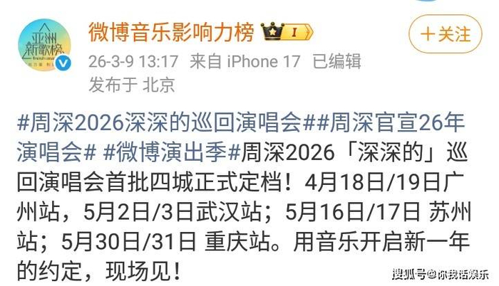 周深2026深深的巡回演唱会消息,这样广而告之!真好!