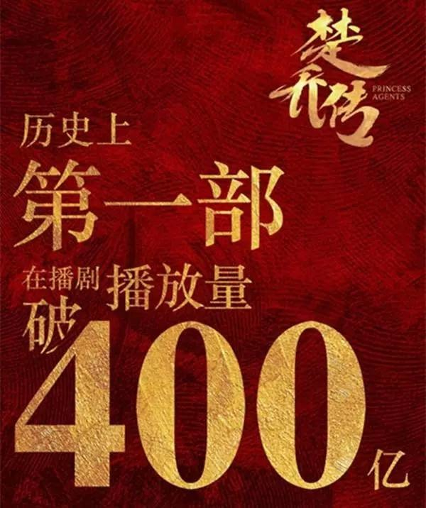 而在网络点击播放量上,《楚乔传》更是成为第一部在播期间破400亿的电视剧。先不说人口够不够用,光这一数字就非常耀眼 了。