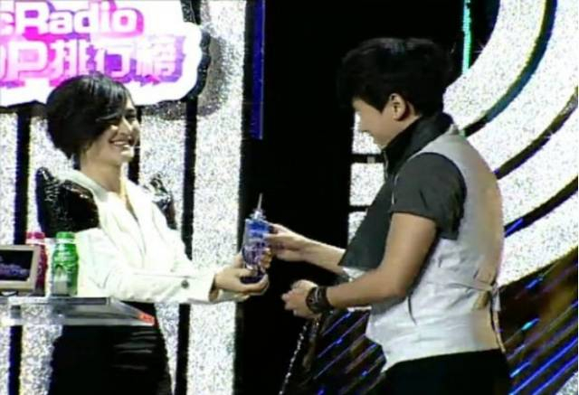 2012年,在musicradio颁奖典礼上,谢娜作为嘉宾为张杰颁发了内地最受欢迎男歌手的奖项,主持人和粉丝都在起哄,他们害羞的拥抱了。