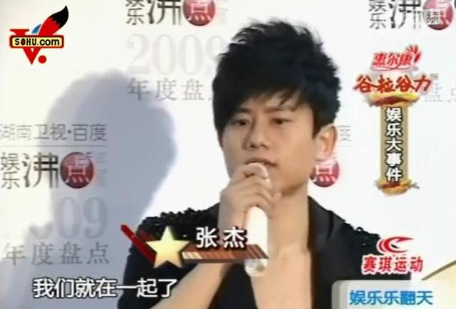 2010年1月31日,在2009年度百度娱乐沸点盘点的现场,张杰获得了年度最受欢迎内地男歌手,并宣布两人在一起的消息。
