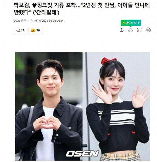 当天朴宝剑回忆与孩子们的初次见面时告白道:"我们是2年前《音乐银行》世界巡演时第一次打招呼的,还记得吗?一起进行了舞台表演。我弹钢琴,她们唱歌给我们听。虽然没有一起练习的时间,但通过耳返听到Minnie的声音后完全被迷住了",引发关注。