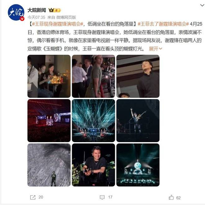 当晚7点半,王菲和友人猫着腰溜进二楼包厢。有眼尖粉丝拍到她全程没摘口罩,但藏不住眼角笑纹。谢霆锋唱到快歌时,她跟着节奏用脚打拍子;《玉蝴蝶》前奏刚响,她突然放下手机,举着荧光棒的手晃得比谁都高。这首歌正是24年前两人的定情曲,谢霆锋在台上弹着印有天使装饰的吉他,唱到“如玉的心,纯白得像雪山”时,被拍到用拨片挡住泛红的眼眶。