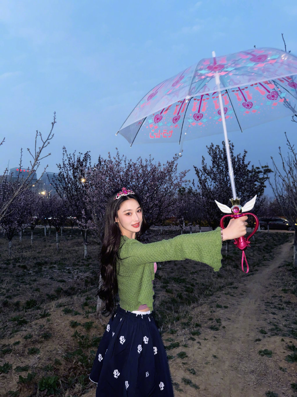 在3月30日,张馨予在社交平台上晒出生日美照,还配文:皇冠和雨伞是粉丝送的,当然要好好出片,在一片樱花地里拿着魔法雨伞戴着皇冠像是城堡里的公主,而且还穿着紫色小肚兜陪着绿色针织衫美得好惊艳。