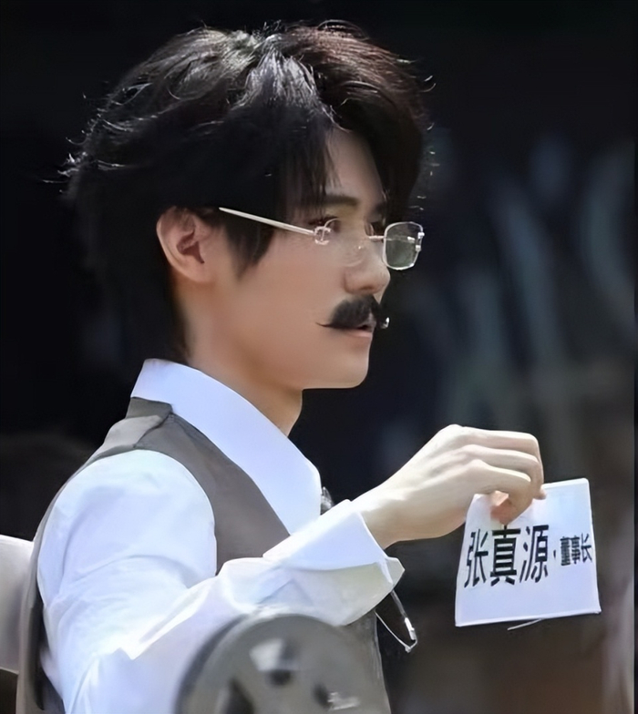 从首期节目的路透来看,印象最深刻的就是他的形象了,贴上胡子演董事长,就说这反差感绝不绝吧!