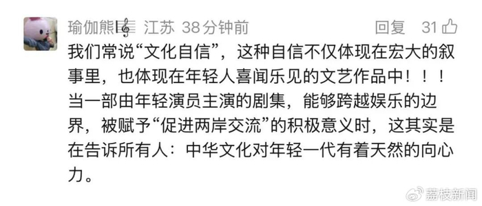 作为国人,我们看见国产剧目如此成功地文化输出,我们应该骄傲、自豪。对优秀的创作团队,我们应该为他们大大地点赞,就像国台办认为这剧优秀一样。