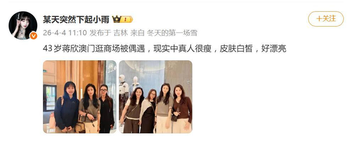 最近,43岁的演员蒋欣在澳门逛商场被网友偶遇,其真实状态与荧幕形象的巨大反差,直接在网上刷了屏。一句“真人比电视上好看十倍”的惊叹,成了这波偶遇热潮的最佳注脚。