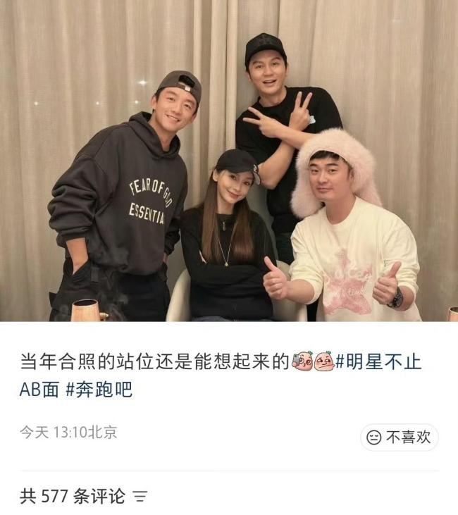 4月13日,作为《奔跑吧兄弟》元老级嘉宾的李晨,在个人社交账号上晒出了与郑恺、陈赫、Angelababy私下聚会的照片,引发网友热议。初代“跑男团”的线下合体让粉丝们感动不已。李晨配文:“当年合照的站位还能想起来。”