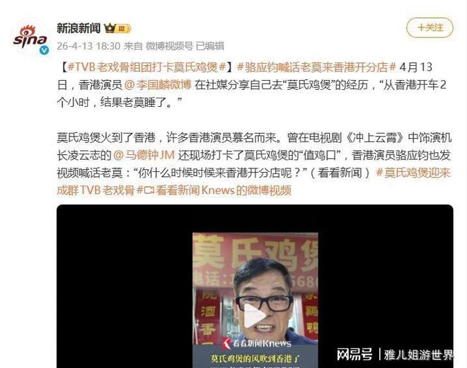 这波“明星探店”热度还没过,隔天(4月13日),另一位老戏骨李国麟就在社交平台“诉起了苦”。他发布视频称,自己特意从香港开车两个多小时奔赴佛山,结果到了店门口却扑了个空——老板“老莫”已经睡觉打烊了。视频中天色已黑,饰演过“吐蕃国师鸠摩智”的李国麟对着镜头一脸“不甘”,幽默喊话:“冰鲜鸡在哪?我来找老莫啊,食下冰鲜鸡!”并发出灵魂拷问:“老莫你什么时候开宵夜?”
