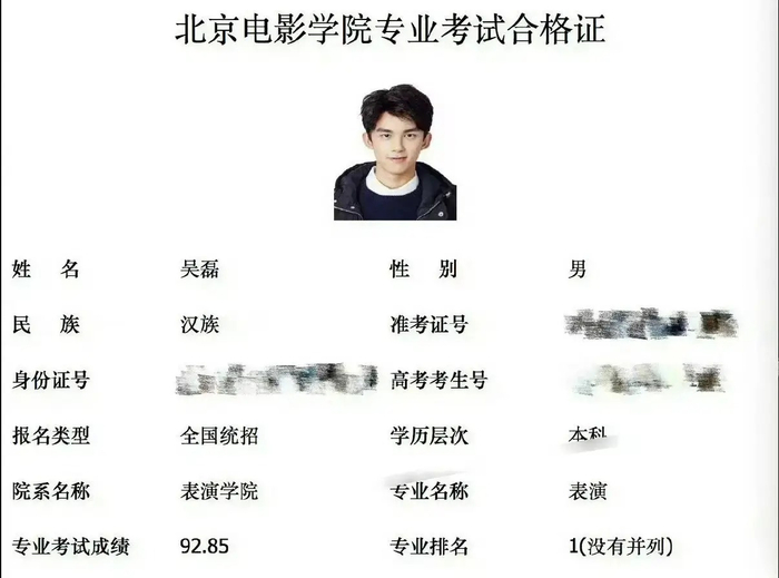 值得注意的是,北电表演系今年的最高分为90.46分,而吴磊凭借92.85分的成绩,连续7年成为北电表演系艺考最高分记录保持者。