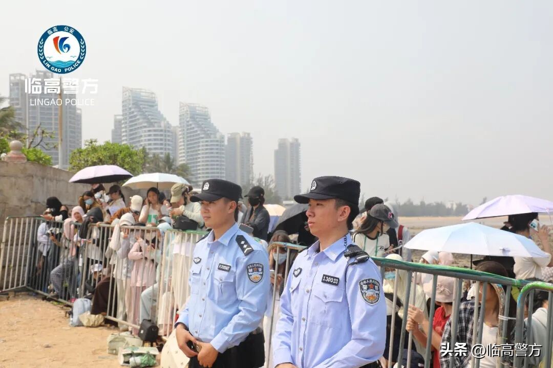 “请在安全区域观看,切勿靠近拍摄场地!”“请照看好身边的老人和小孩,谨防走失……”安保工作中,执勤民辅警不仅是恪尽职守的安全守护者,更是热心周到的服务者,用耐心劝导、暖心服务拉近与群众的距离,展现临高公安的优良作风。