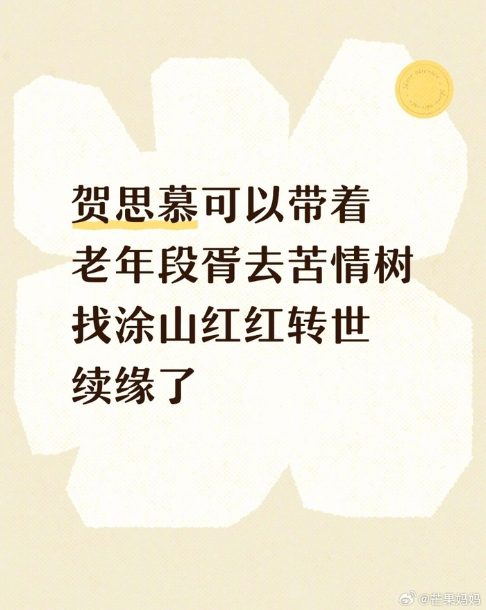 受不了,有人说贺思慕可以带着老年段胥去苦情树下找涂山红红转世续缘,你这知识都学杂了