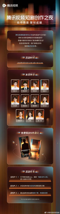 腾讯视频短剧创作之夜于4月21日通过双平台同步直播,蔡欣洋、陈添祥、吴佳怡、申浩男等演员与饶雪漫等知名编剧齐聚宁波。活动以“拾作而至,聚创成潮”为主题,通过主创对话、幕后花絮及第二直播间互动,展现短剧从孵化到成品的全流程创造力。现场同步开启站内征集活动,鼓励用户参与创作脑洞,强化了平台与观众的深度联结。