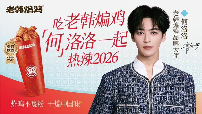 同时,何洛洛从全民票选出来的优质偶像、治愈系少年,到娱乐圈多栖发展的唱跳歌手、青年演员,与老韩煸鸡近30年来坚守“三炸一煸”古法辣子鸡技艺,到如今成为全国连锁小吃品牌的成长路径无比吻合,两者都强调“以真功夫赢得长久”的道理,而非追逐短期热度,这种精神层面的契合,使代言超越了表面曝光,更具备了传播的深度。