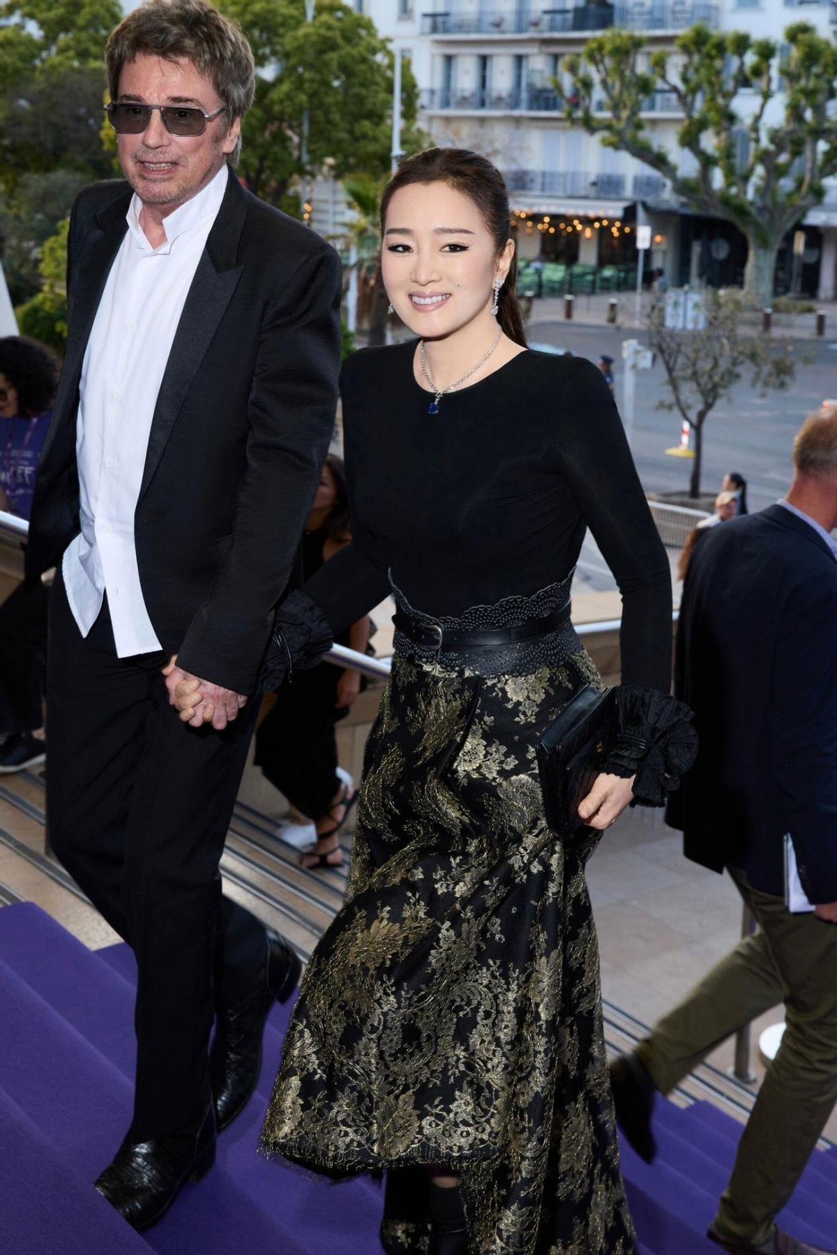 在戛纳的红毯上,巩俐与丈夫的同框亮相,照片中的巩俐穿上了黑色针织衫,搭配鎏金提花半身裙,直接把 “东方女性的从容贵气” 焊在了身上。60 岁的她,没有选择夸张的礼服,反而用一套简约却充满巧思的搭配,穿出了独属于巩俐的气场,从头到尾的细节都堪称中年女性穿搭的范本。