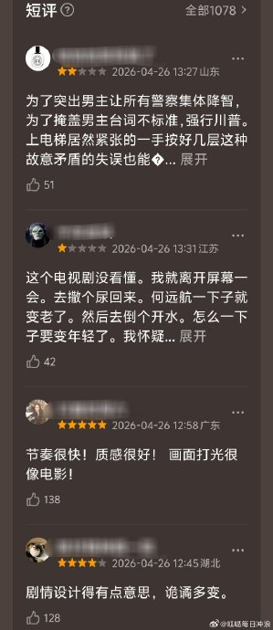 大量差评指向王鹤棣台词如“背书”“毫无情感波动”,尤其在审讯、推理等关键场景中,语气平直、断句生硬。例如首集刑警队汇报案情时,被批“像机器人念报告”,与角色应有的敏锐感脱节。