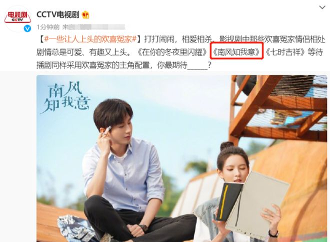 不仅如此,《南风知我意》也是备受期待的偶像剧,该剧早在2020年就发布剧照,至今已经积压将近2年,剧粉都等“佛”了。而眼下该剧被央视“CCTV电视剧”官方账号发文预热,想必很快就能与观众见面,该火了。