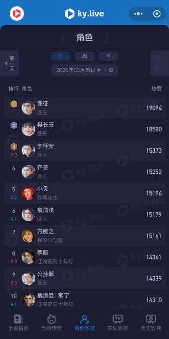 李怀安角色热度稳居全剧前三,与主演共同拉动剧集在云合、灯塔等数据榜登顶;