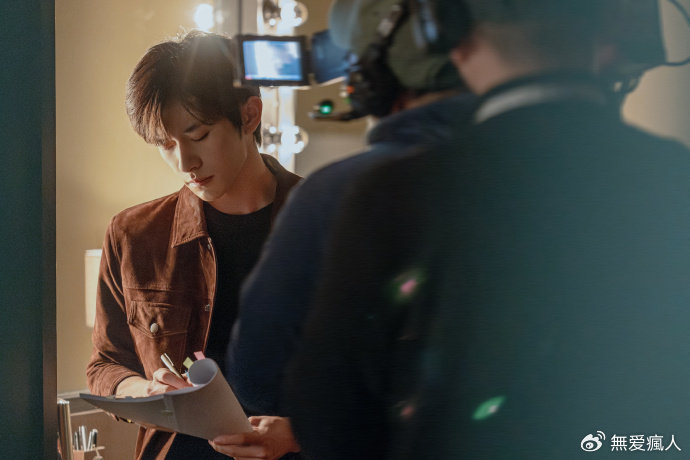在拍摄的间隙,他手持剧本,认真研读,那专注的模样让人动容。工作人员为他整理头发时,他安静地坐着,眼神中透露出沉稳与淡定。那棱角分明的五官,在光影的交织下愈发立体,每一个轮廓都仿佛是精心雕琢的艺术品。