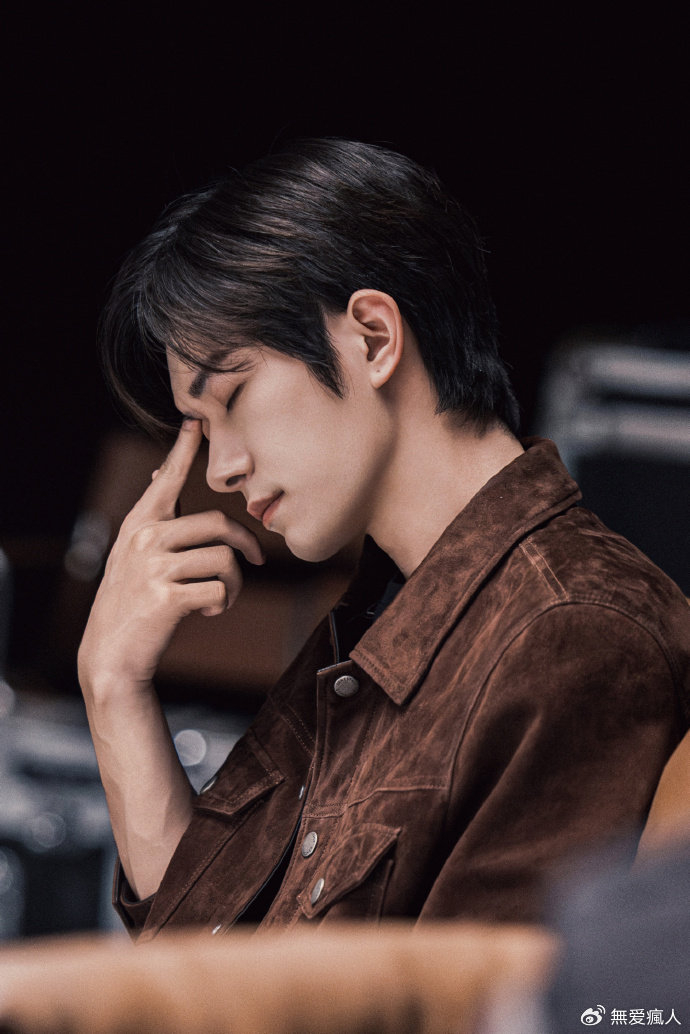 照片里的他,身着一件棕色的麂皮外套,质感满满。他单手撑着头,双眼轻闭,仿佛沉浸在自己的世界中,周身萦绕着一种静谧而深邃的氛围。坐在椅子上的他,目光望向远方,神情中透着一丝沉思与专注,让人忍不住想要探寻他内心的想法。