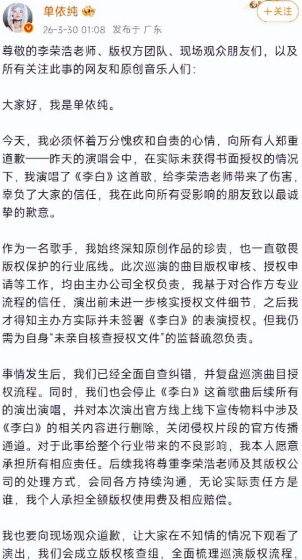 而单依纯这边也很快就道歉了,说什么疏忽了这个问题,这敷衍的态度不如不声明。