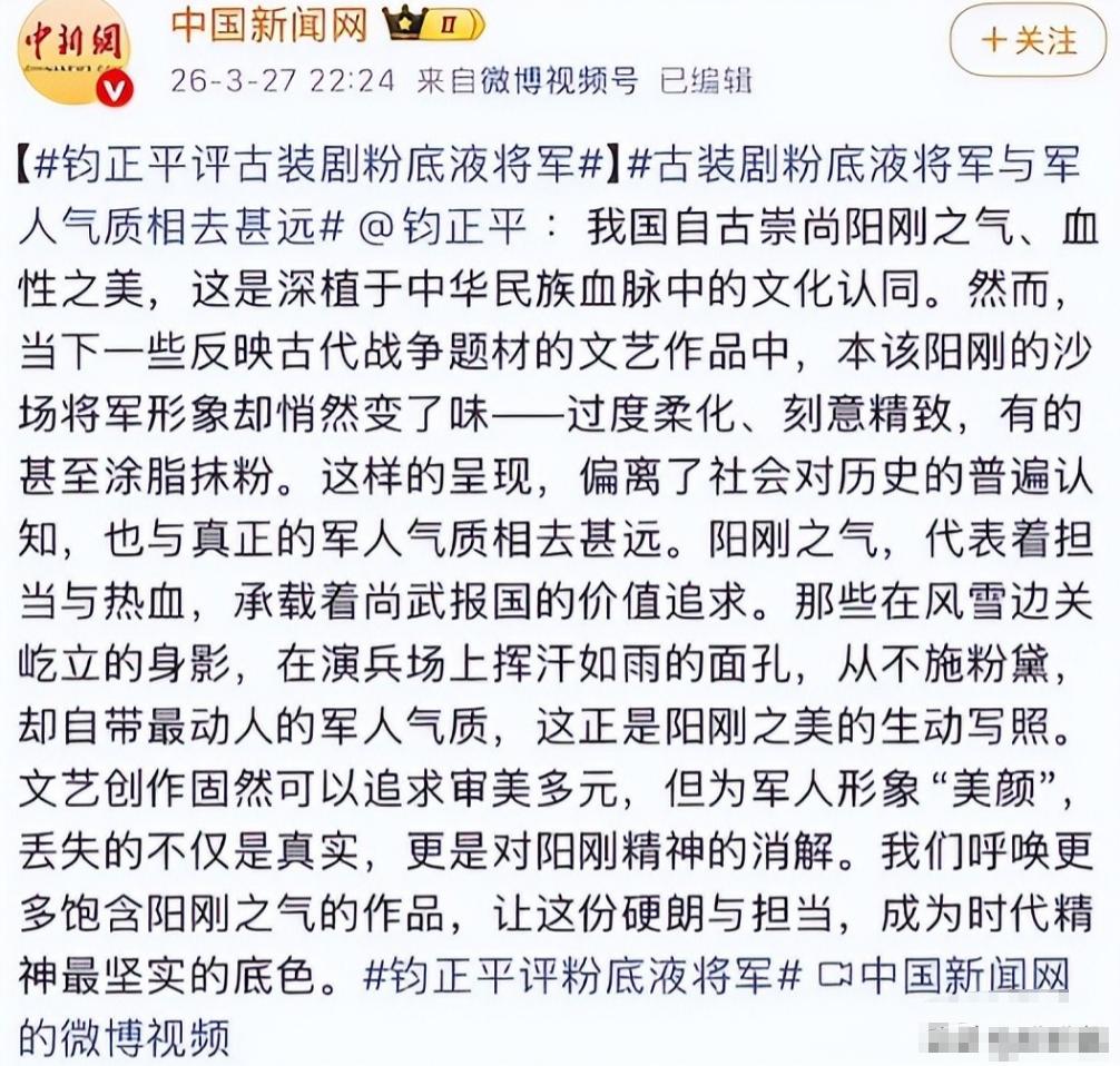 别说军人的气场了,连一点战场上的烟火气都没有,也难怪会被网友调侃是“粉底液将军”。