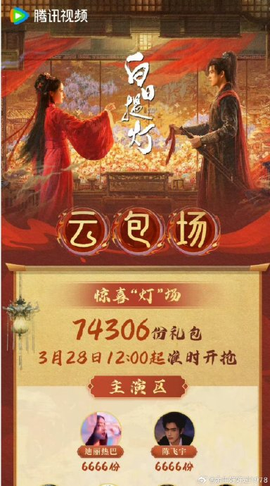 迪丽热巴主演的古装剧《白日提灯》开播前夕掀起“云包场”热潮,全网总规模突破22万份(实际达227,194份),这一创新宣发模式通过精准分配策略,将粉丝、主创、品牌及路人观众深度绑定,成为内娱剧集营销的现象级案例。
