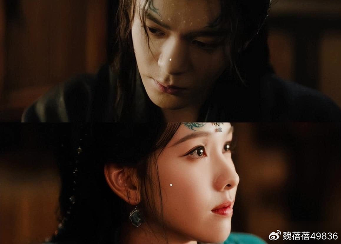 这种极致的张力,在星石幻境中达到了顶峰。两人被迫成为夫妻,从互相防备到相濡以沫,武拾光甚至在雾妄言失明后甘愿做她的“眼与岸”。陈都灵和曾舜晞凭借这种“给一点颜色就敢开染坊”的炸裂演技,把一场被剪到只有几十秒的浴池戏,演成了观众心中永远的“性张力天花板”。