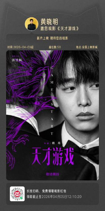 悬疑犯罪电影《天才游戏》于2026年4月4日正式登陆全国院线,彭昱畅与丁禹兮领衔的双男主身份互换博弈成为当前观影焦点。