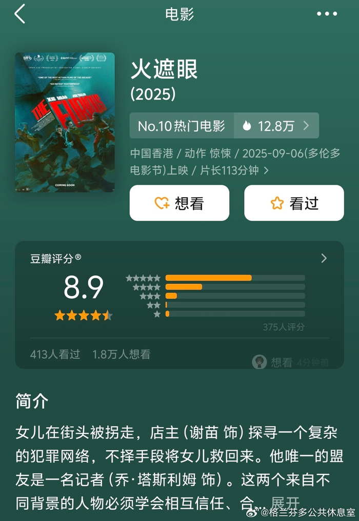 电影《火遮眼》开分8.8分,目前已上涨至8.9分!!!