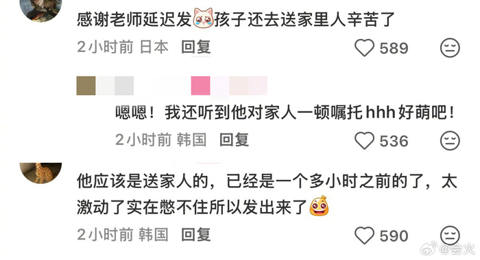 #韩国机场偶遇韩振送家人##网友机场偶遇韩振#