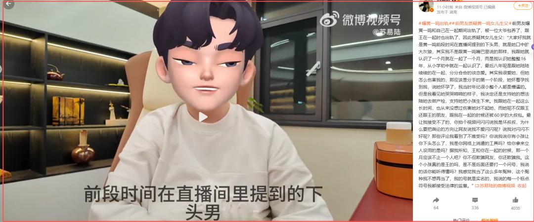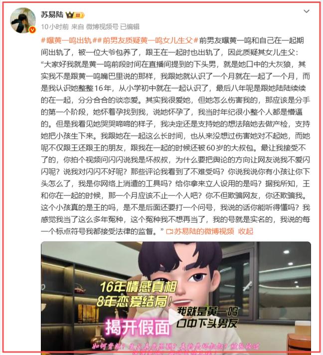 但有些人本身就在泥里,你只要再踩一脚,就到了他忍耐的极限,就会暴起反抗。这不,黄一鸣的这位“前男友”发了一条视频。