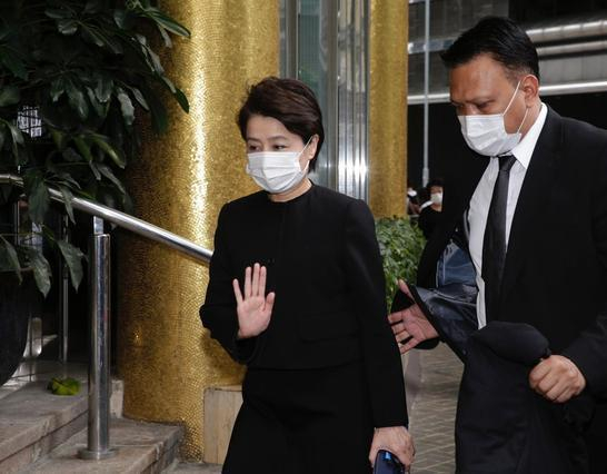 等看完返回灵堂座位,台下的太太女儿们终于忍不住哭起来,何超凤忍不住拉下口罩失声哭泣,并抹掉眼泪,已经56岁的她此刻不是商场上的女强人,只是个失去父亲的女儿。