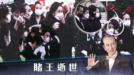 下午1时55分,何家亲属向赌王遗照三鞠躬,儿子们何猷龙、何猷享、何猷君、何猷启去了后堂,太太女儿们瞻仰赌王的遗容。