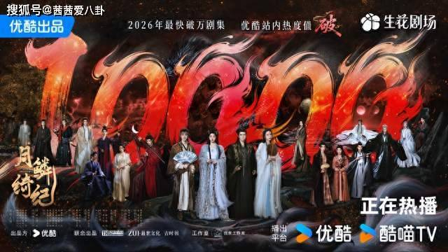 4月3日,古装奇幻剧《月鳞绮纪》迎来热度爆发,开播仅52小时便成功突破优酷站内热度10000,一举拿下2026年最快破万剧集的称号,用实打实的数据打脸前期所有质疑,成为近期内娱剧圈最大黑马。