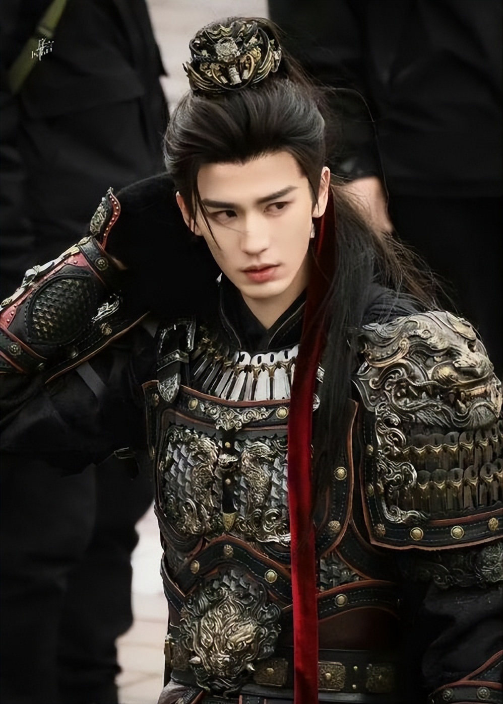 铠甲锃亮,头戴雉鸡翎,脸上白皙无瑕,发丝一根不乱。