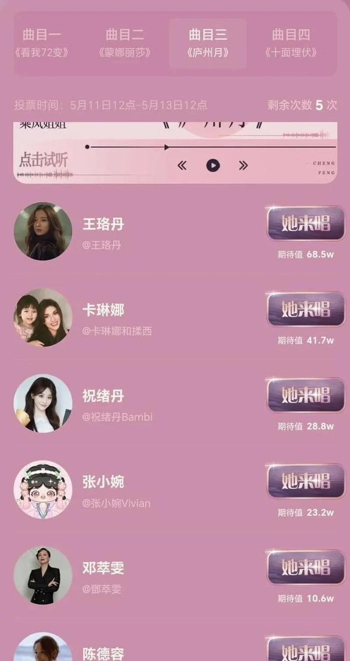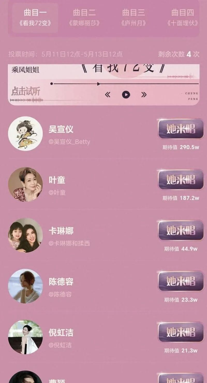 转而采用让网友给姐姐们选歌并投票的新玩法。