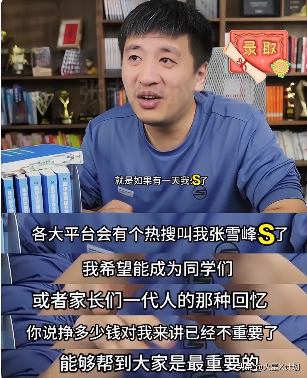 张雪峰曾在直播间说:“我是那个需要去付出去牺牲的人,不用考虑自己喜欢什么或者干什么开心。”