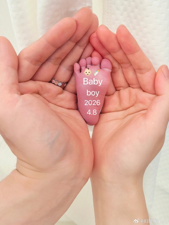 照片中,宝宝的小脚丫上清晰标注着“baby boy 2026.4.8”。刘思维配文写道:“你不必为母则刚,依旧是那个小女孩。在保护老婆的路上,我又多了一位战友!今日领取新身份,升级当爸啦!”这波操作,被网友盛赞为“官宣文案天花板”。其中,“不必为母则刚”直击传统育儿观念中对母亲角色的刻板束缚,强调对妻子的疼惜与呵护;而将新生儿称为“战友”,则巧妙比喻其为家庭守护联盟的新生力量,温情又不失幽默。