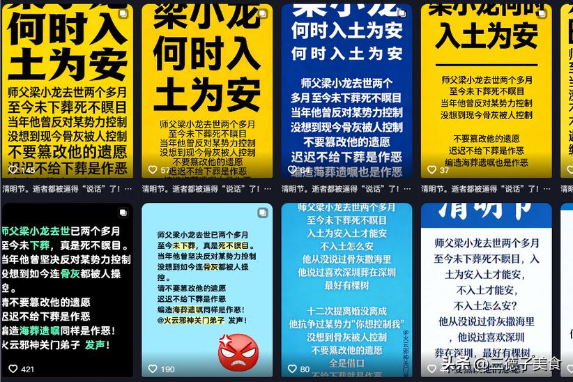 虽然她话说得硬气,但却并未公开确切的下葬时间,反而更加印证了梁小龙弟子称她不作为的说法。
