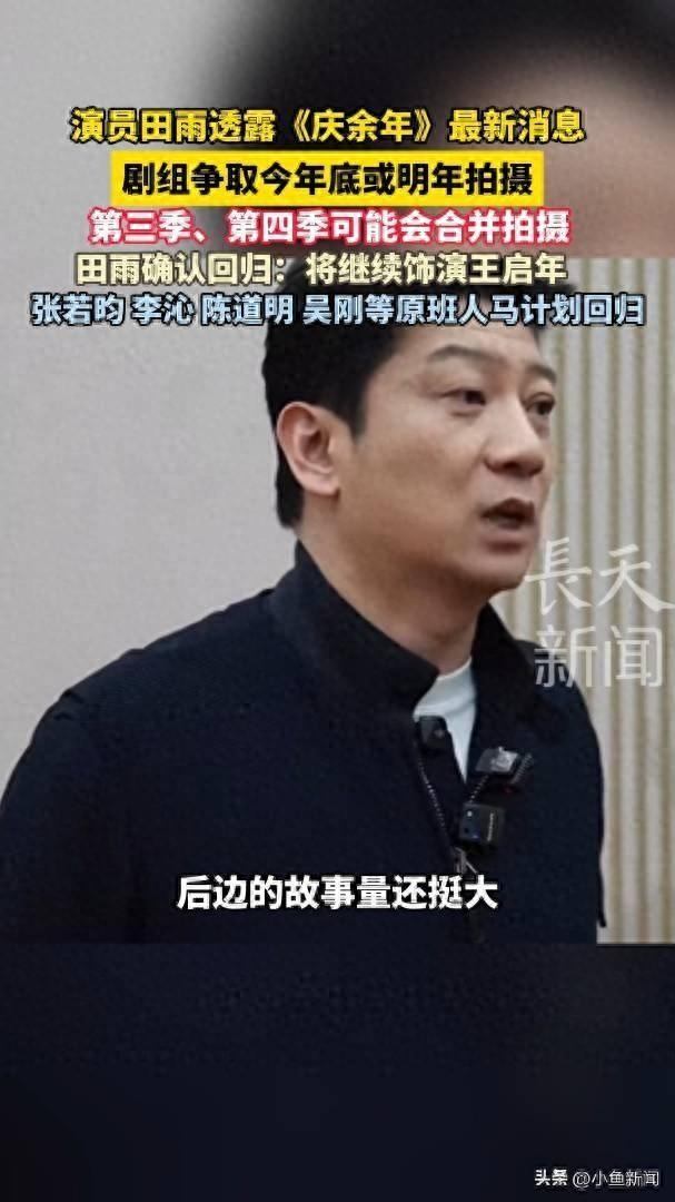 2026年4月13日,在北京中国国家话剧院的活动上,演员田雨爆出《庆余年》最新猛料——第三季和第四季要合并拍摄,争取2026年底或2027年初开机。