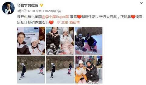 3月5日,马智宇晒出了一组和李小璐一起滑雪的照片。照片中两人互动很是开心和亲密,并且在一些互动上两人还颇有默契,马智宇也被说是李小璐的“绯闻男友”。