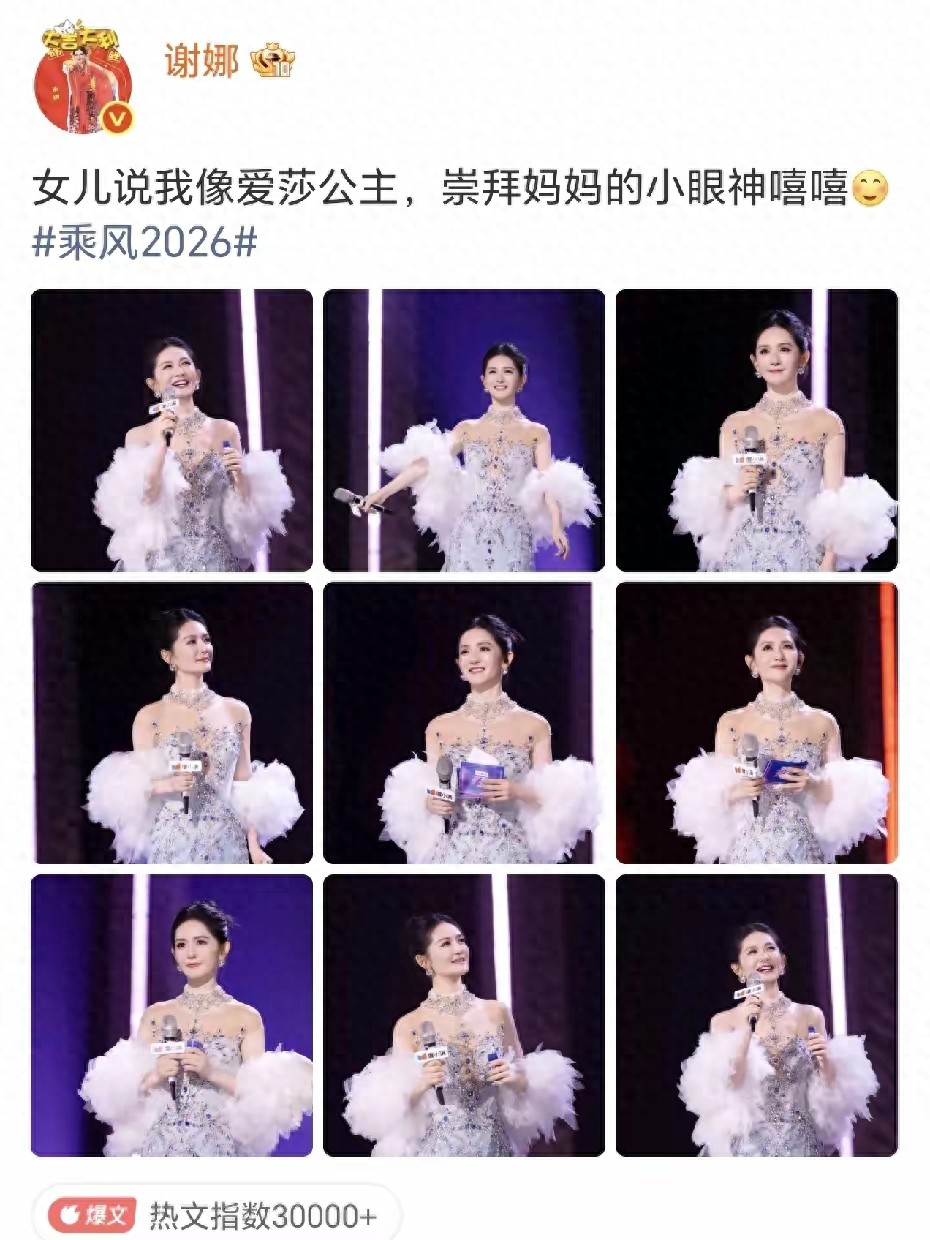 4月13日,谢娜在个人社交平台分享了一组《乘风》舞台的美照,尤其是在《乘风》舞台官宣自己的演唱会后瞬间引发不小的争议,毕竟作为非专业歌手开演唱会肯定会面对不一样的声音。随后张杰表示全力支持,给足了谢娜排面。不过这次谢娜的得瑟来源于女儿的高度认可,女儿说妈妈像艾莎公主。