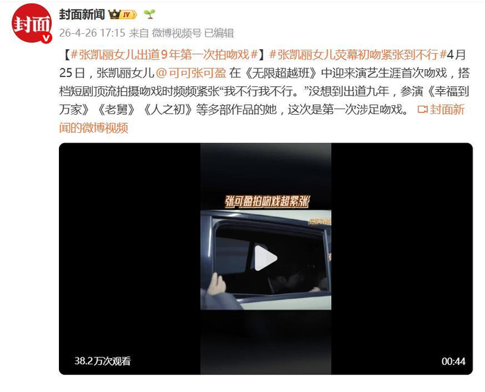 有意思的是,这位“星二代”可不是刚出道的新人。翻翻她的履历,张可盈已经在《幸福到万家》《老酒馆》《人之初》等二十多部影视剧里刷过脸,戏龄整整九年。可偏偏就是这么一位“老演员”,在吻戏面前,一秒被打回原形。