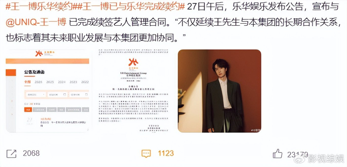 一般艺人签约新公司或者与老东家解约续约,都不会有多大动静和关注,但有的艺人因为本人和公司名气,所以备受关注,比如王一博和乐华娱乐。