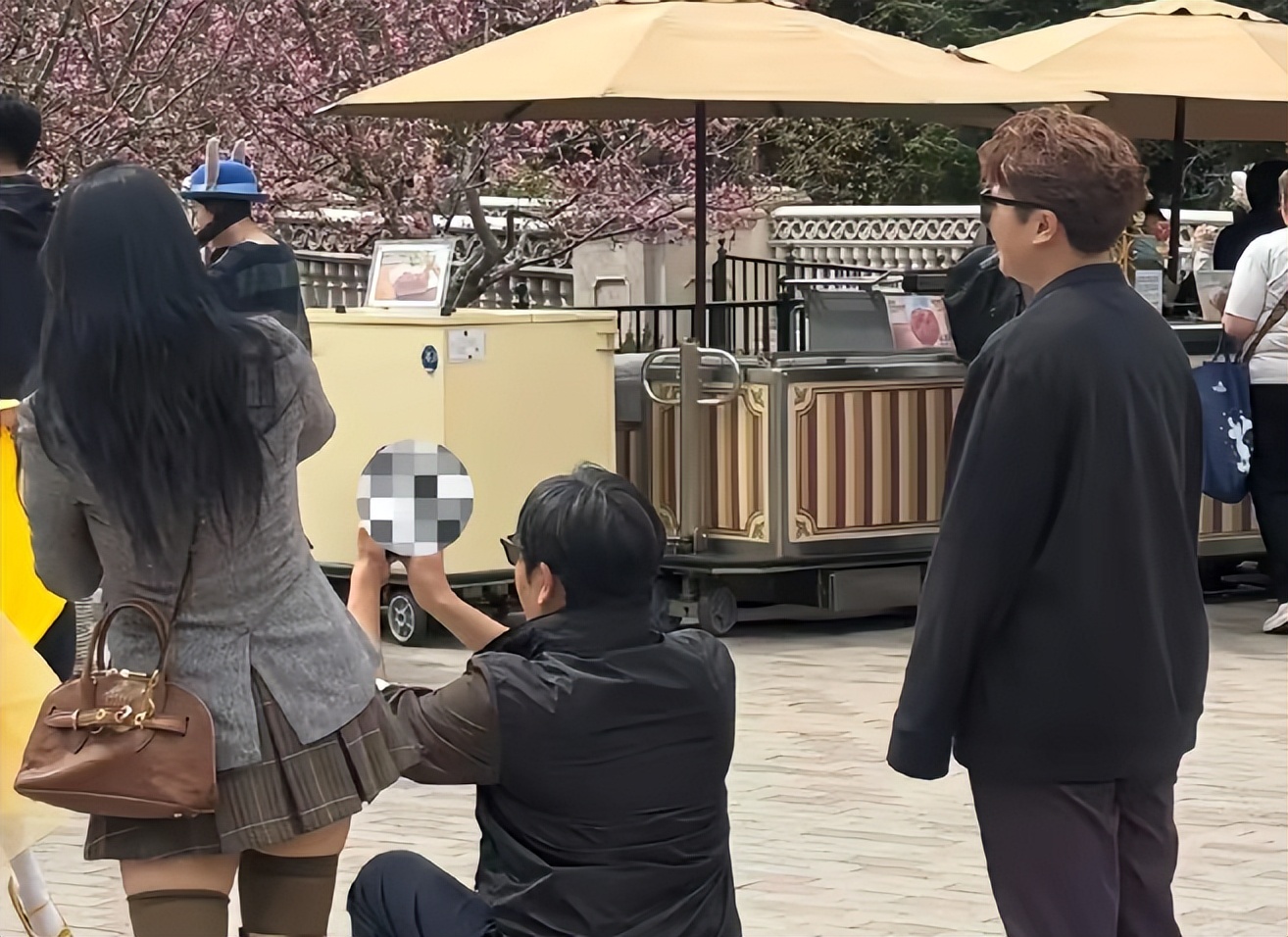 他全程没松开过伊能静的手,就那么自然地牵着她在乐园里逛,中途有眼尖的游客认出了他们,凑上来想跟伊能静合个影。