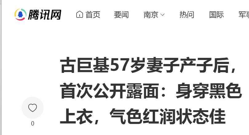 《古巨基57岁妻子二胎后首次公开露面:身穿黑色上衣,气色红润状态佳》(腾讯新闻)