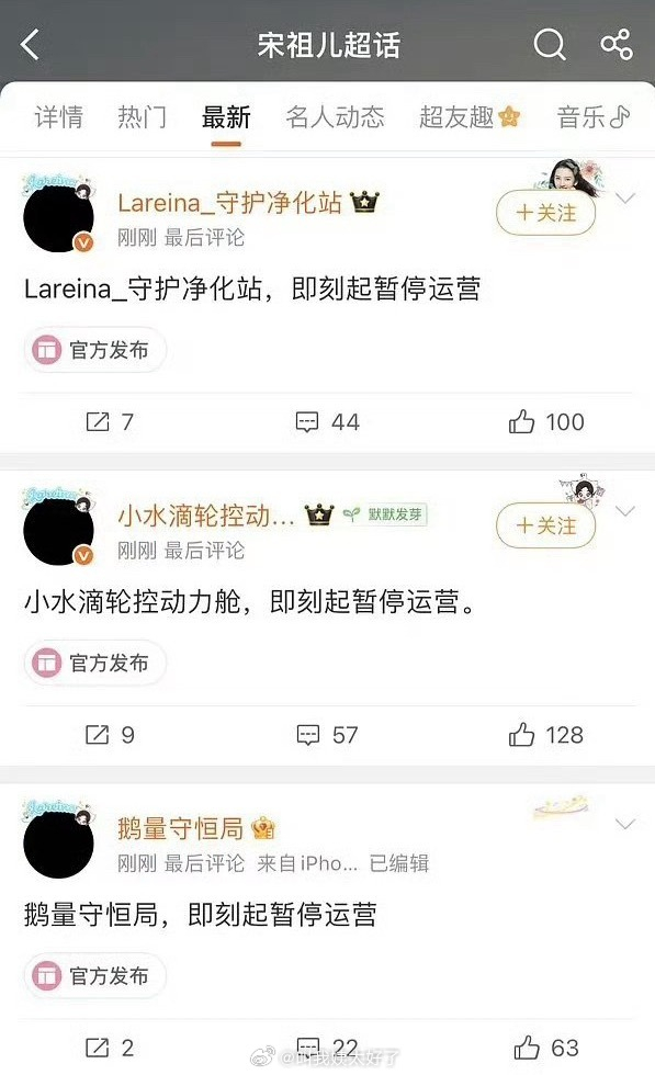 宋祖儿官方后援会停止运营,几个站子也停止运营了。昨天的事情闹这么大?